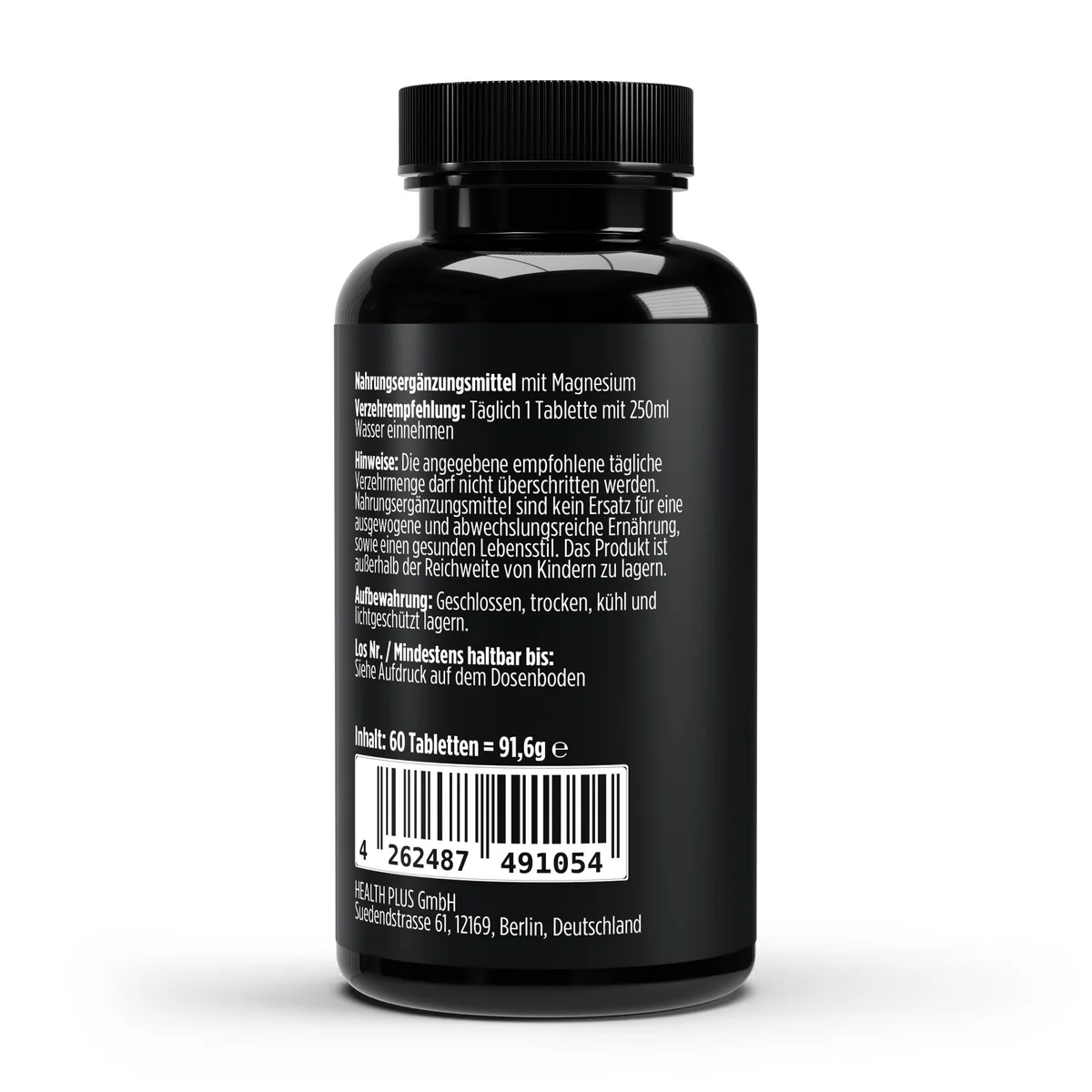 - Synergetische Mischung aus Magnesiumcitrat, -bisglycinat, -malat und -oxid für eine schrittweise Aufnahme im Körper.