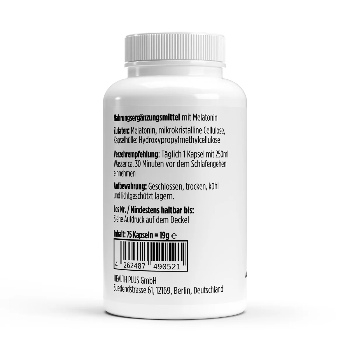 Unsere Health Plus Melatonin Kapseln enthalten 1 mg hochwertiges, rein veganes Melatonin pro Kapsel.